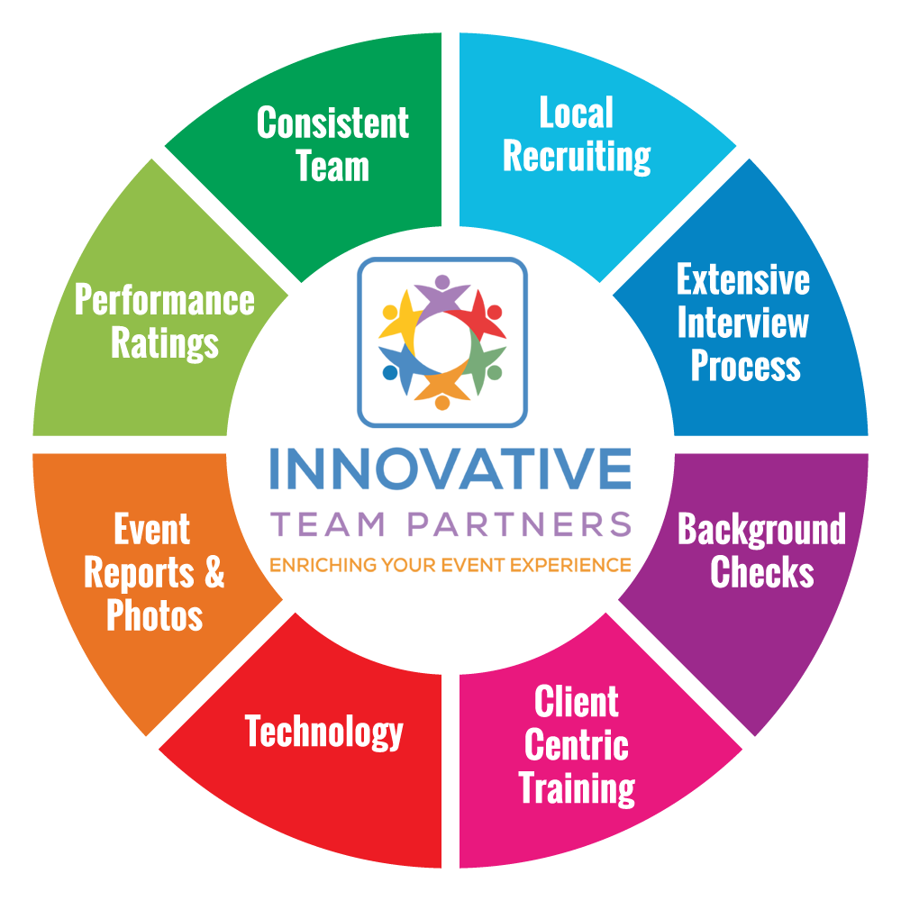Innovative Team Partners is an event staffing solution designed by seasoned professionals. We developed the Dynamic Staffing Model to improve the guest experience and save on event expenses. Contact us today to learn how we can partner together.